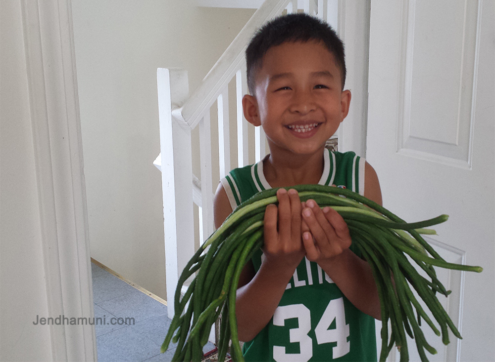 The very first time AJ knocked on my door and brought me many string beans, with a big smile!