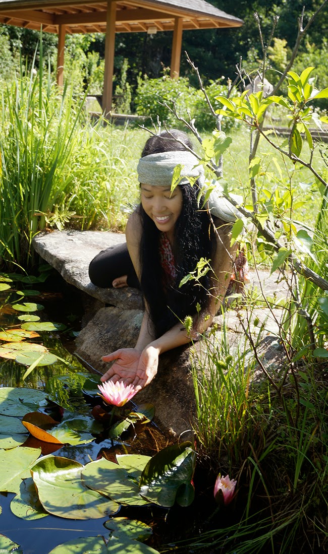 A seven-year-old girl took this photo of me at the Lotus pond, in the forest. And she told me to smile just like a happy fairy who gets so excited seeing beautiful lotus flowers at the pond… Since I am not a fairy, I had to smile just like Jendhamuni! She’s the girl who decorated my hair with this silver head scarf. ~Jendhamuni