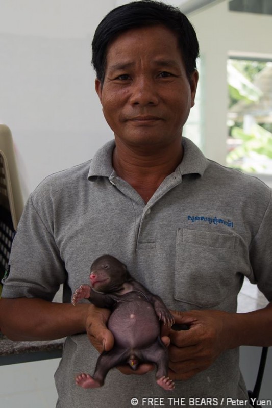 Both Sun bear cubs are female. Villagers found them in the Ratanakiri province after their mother was chased away into the forest by an intense dog. They’re so young that they have yet to open their eyes!