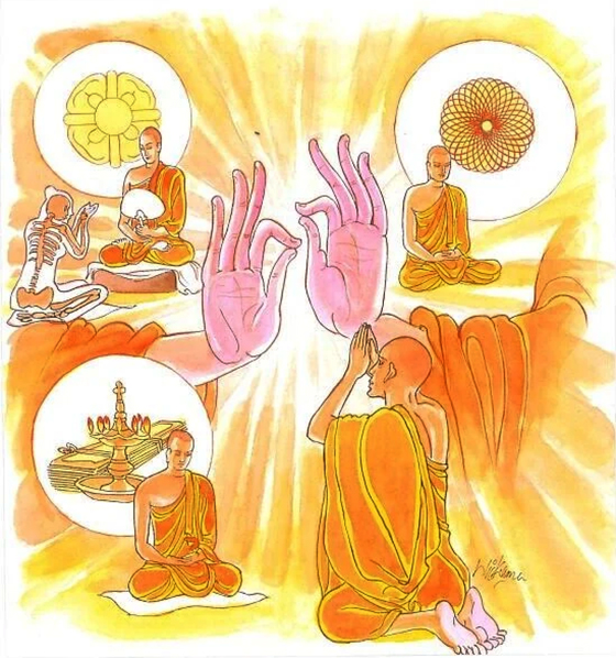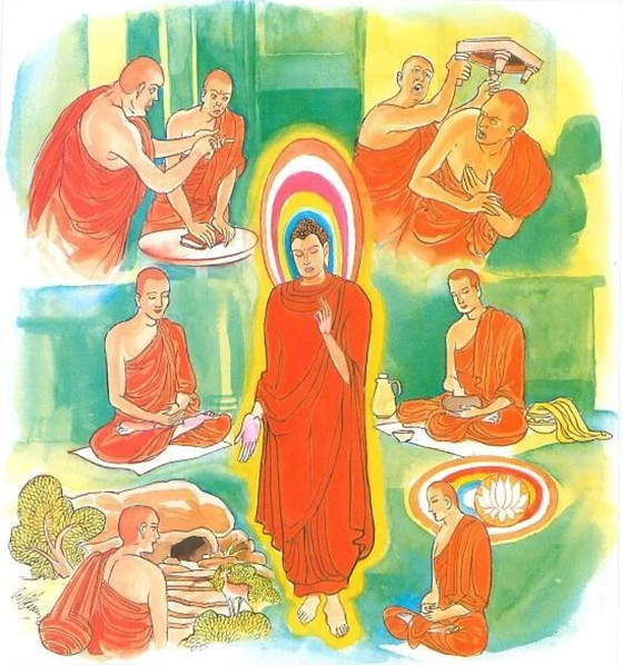 Verse 185: Not to revile, not to do any harm, to practise restraint according to the Fundamental Instructions for the bhikkhus, to be moderate in taking food, to dwell in a secluded place, to devote oneself to higher concentration – this is the Teaching of the Buddhas.