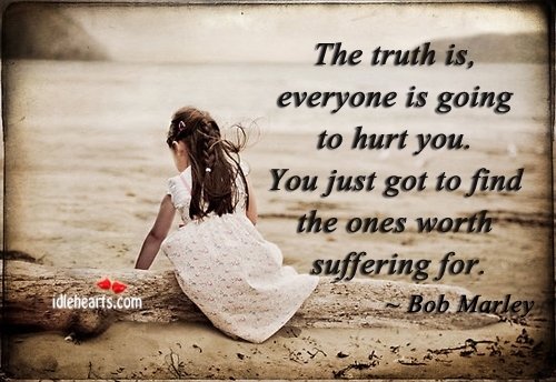 The truth is, everyone is going to hurt you. You just got to find the ones worth suffering for. ~Bob Marley