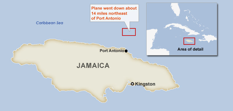 Search and rescue teams, including a military plane and a helicopter, were despatched to the crash site about 14 miles (22 km) north of the tourist town of Port Antonio, Jamaica’s Civil Aviation Authority said.
